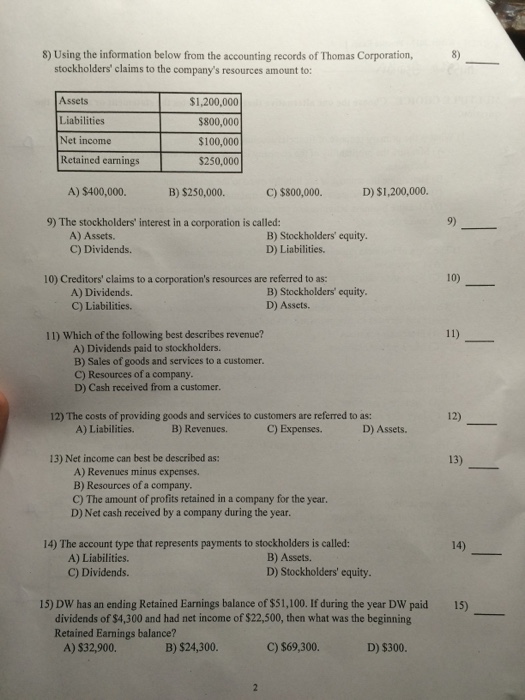 Creditors claims to a corporations resources are referred to as. Generally Accepted Accounting Principles GAAP are best defined as A.